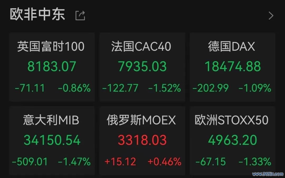 欧洲股市方面,隔夜其主要市场股指同样迎来调整:截至收盘,英国富时100指数、法国CAC40指数、德国DAX指数分别下跌0.86%、1.52%、1.09%。